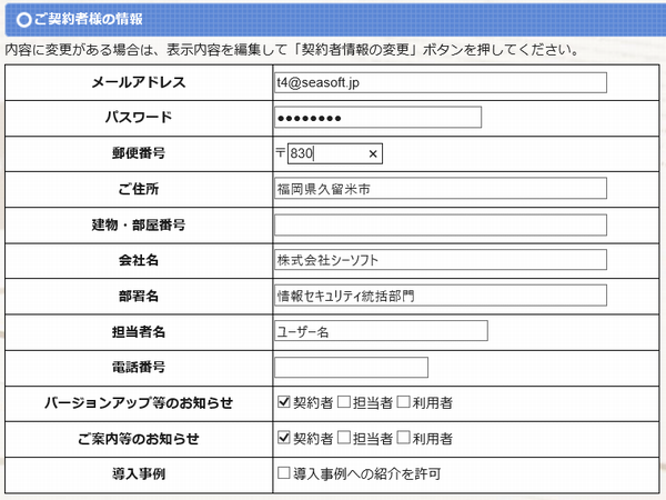 変更の内容を入力の上、「契約者情報を変更する」ボタンを押してください。