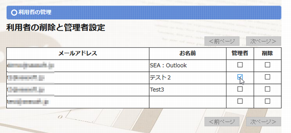 設定する利用者の管理者部分のチェックボックスを変更することで更新されます。