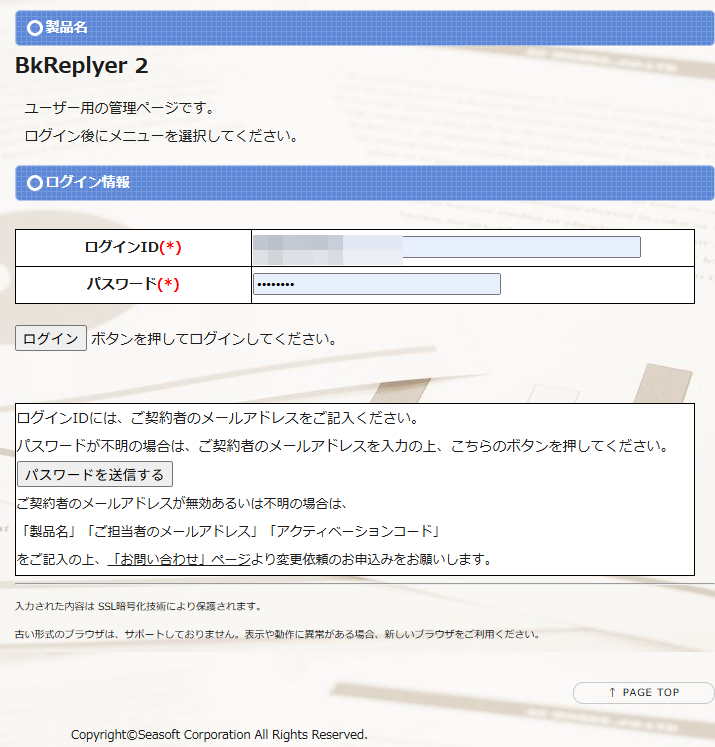 ログインIDは、ご契約時のメールアドレスです。