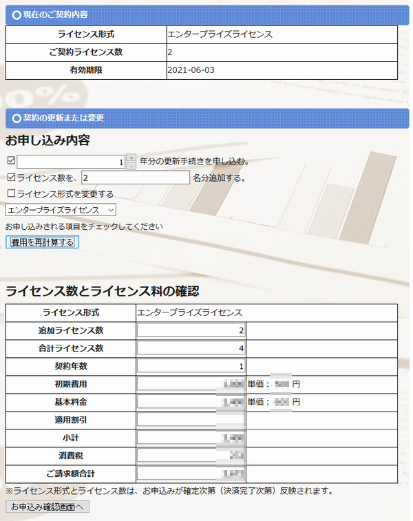 製品の更新手続きでは、ご契約中のライセンスの更新やライセンス形式の変更、ライセンス数の追加などを行います。