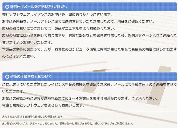 決済状況が確認でき次第、ライセンスの更新が行われ、メールで通知されます。