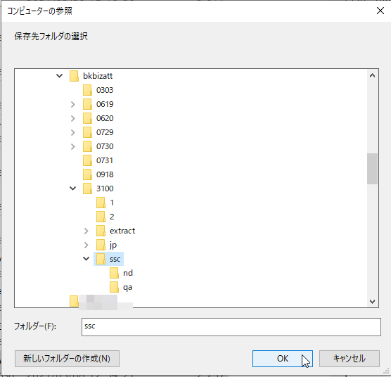 BkBizAttacherでは、対応可能な圧縮形式ファイルを自動的に展開する機能があるため、展開可能な圧縮ファイルの場合は「名前を付けて保存」処理ではなく「保存先フォルダの選択」が表示されます。