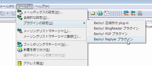 「ツール」メニューに、「Becky! Replyer プラグイン」メニューが追加されます。